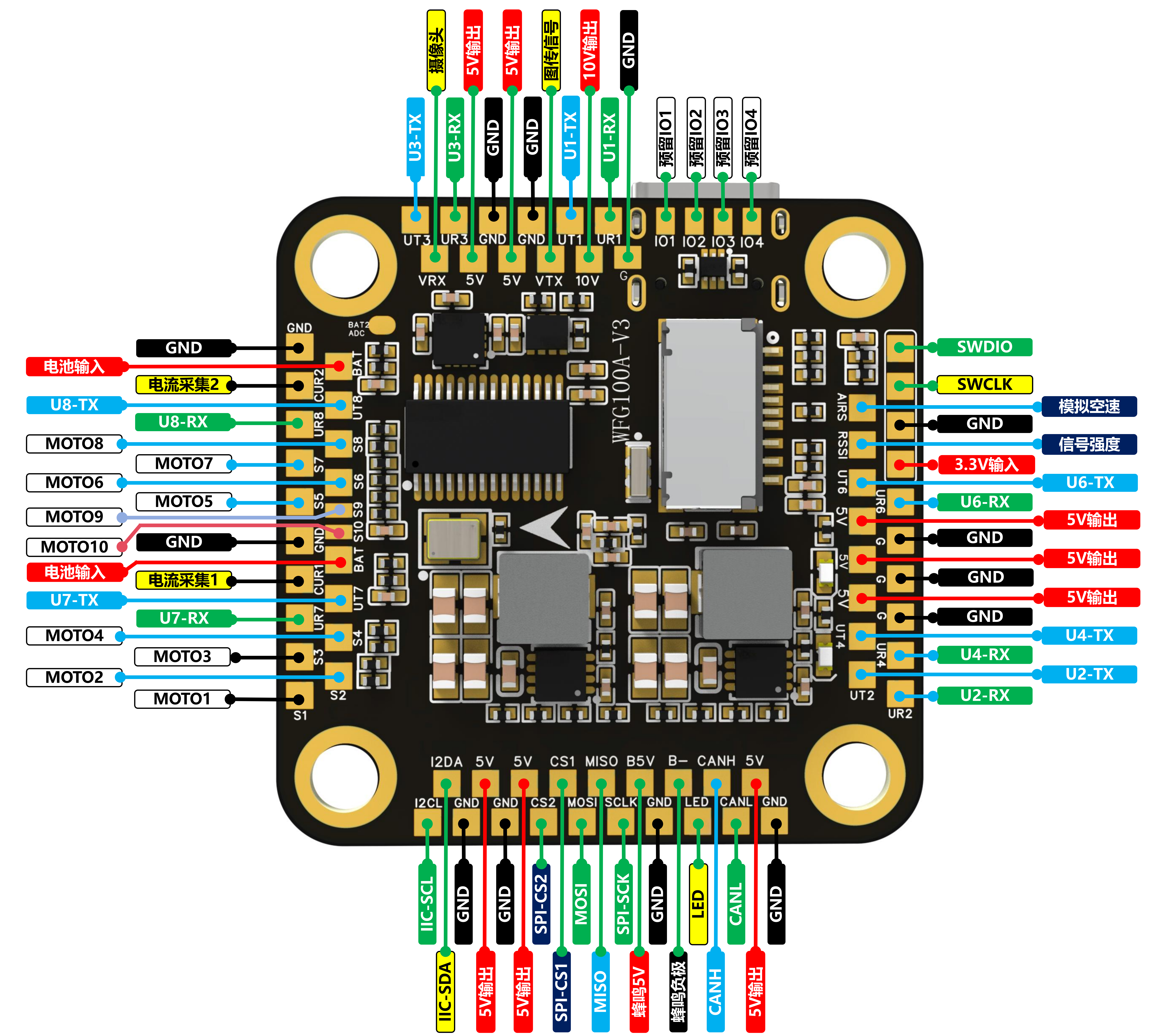 WFG100A开源飞控的V1、V2、V3、V4其接口定义与焊盘定义都是一样的!